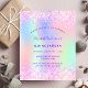 A girly and feminine Quinceañera, 15th birthday party invitation. On front: A rainbow, holographic colored background in purple, pink, mint green, rose gold. Decorated with blush pink faux glitter, sparkles. Personalize and add a name and party details. The name is written with a hand lettered style script, purple colored letters.
