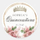 Quinceañera Pink Rose Crown Birthday Favors Classic Round Sticker