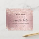 A Save the Date card for a Quinceañera, 15th birthday party. A blush pink background decorated with rose gold confetti. Personalize and add a date and name/age. The text: Save the Date is written with a large trendy hand lettered style script with swashes.