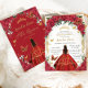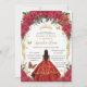 Quinceañera Princess Red Roses Floral Vintage Gold Invitation