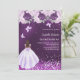 Quinceanera purple dress pink florals invitation