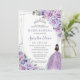 Quinceañera Purple Floral Princess Silver Birthday Invitation