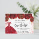 A girly and trendy Save the Date card for a Quinceañera, 15th birthday party. A white background decorated red roses, faux gold glitter sparkles and a red dress. Personalize and add a date and name/age. The text: Save the Date is written with a large trendy hand lettered style script.