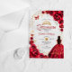 Quinceanera Red Roses Dress Gold White Acrylic Invitations