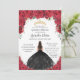 Quinceañera Red Roses Floral Black Dress Gold Invitation
