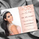 On front: Add a vertical size photo. An elegant rose gold, blush gradient background color, decorated with faux glitter dust. Personalize and add a name and details.