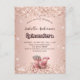 A rose gold gradient background decorated with confetti and a romantic vintage carriage. Personalize and add her name, party details.