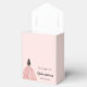 Rose gold, blush background, decorated with confetti and a girl in a ball gown, dress. Personalize and add name and date.