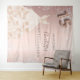 A welcome tapestry for a girly and glamorous Quinceañera, 15th birthday party. A rose gold faux metallic looking background decorated with faux silver glitter dust and a dress. Personalize and a date and name. Number 15 is written with a balloon style font.