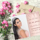 On front: Add a vertical size photo. An elegant rose gold, blush gradient background color, decorated with drips, paint dripping look. Personalize and add a name and details.