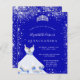A trendy and glamorous invitation for a Quinceañera, 15th birthday party. A royal blue background with faux silver glitter dust, a tiara and a dress. The name is written with a modern hand lettered style script. Personalize and add your party details.
