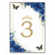 Quinceañera Royal Blue Floral Gold Butterflies Table Number