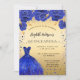 Quinceanera royal blue gold glitter dress florals invitation