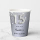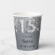 For a glamorous and girly for a Quinceañera, 15th birthday party. A faux silver metallic looking background. On the front and the back: Personalize and add a name and a date. Decorated with faux glitter dust.