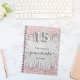 Modern, stylish and glamorous for a girl's Quinceañera 15th birthday party. A faux silver looking background, decorated with pink and faux silver glitter dust. Personalize and a name and a date. Number 15 is written with a balloon style font, script.