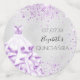 Elegant and glamorous and girly for a Quinceañera, 15th birthday party. A faux silver metallic looking background decorated with purple faux glitter dust and a dress. Personalize and add a name and date.