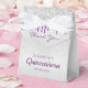 Elegant, classic, glamorous and girly for a Quinceañera, 15th birthday party favors. A faux silver looking background. With the text: Quinceañera and Thank You written with a modern purple colored hand lettered style script. Decorated with faux silver and purple glitter drips, paint dripping look. Personalize and add a name and a date.