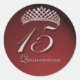 Quinceanera Sticker with diamond bling tiara and dark red background. Perfect design for your 15th birthday party favors / mailings.