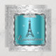 Quinceanera Teal Blue Silver Tiara Eiffel Tower 2 Invitation
