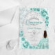 Quinceanera Turquoise Silver Floral Acrylic Invitations