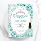 Quinceanera Turquoise Silver Floral Invitation