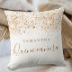 A pillow for a Quinceañera, 15th years old girls room. A chic white background with faux gold glitter dust. The text: Quinceañera is written with a large modern hand lettered style script. Personalize and add a name.