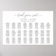This seating chart poster features a modern minimalist design and 24 tables layout. The script text heading is an image that cannot be edited. The heading image can be resized to fit any poster size. All of the other text is fully editable. For more advanced customization of this design, simply select the "Customize It" button above.