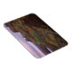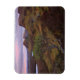 Rectangular photo magnet of a tree in front of the mountains of the Quiraing landscape with pink colors in the sky at sunrise at Trotternish Ridge on the Isle of Skye in Scotland, UK.