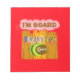 This artwork features a cheerful cartoon bee positioned in front of a series of red, vertical shapes that resemble wooden fence boards. The phrases "I'M BOARD" and "I MISS YOU" are cleverly integrated into the design. "I'M BOARD" is humorously placed above the fence, while "I MISS YOU" is positioned behind the bee, suggesting that the bee is expressing this sentiment.