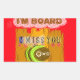 This artwork features a cheerful cartoon bee positioned in front of a series of red, vertical shapes that resemble wooden fence boards. The phrases "I'M BOARD" and "I MISS YOU" are cleverly integrated into the design. "I'M BOARD" is humorously placed above the fence, while "I MISS YOU" is positioned behind the bee, suggesting that the bee is expressing this sentiment.