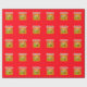 Red: The dominant background color, providing a vibrant and cheerful backdrop that draws attention.