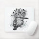 A highly detailed black and white drawing of a bird with an elaborate and spiky crest of feathers