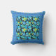 A Throw Pillow or Cushion with a 'Blue Moons' abstract pattern in bright blues and neon green on a black background, bordered by a coordinating Polka Dot pattern. Part of the Posh & Painterly 'Blue Moons' collection; from a handpainted paper collage design by Judy Adamson.