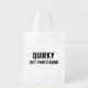 With ithe bold text "Quirky but Functioning," this bag is the perfect way to show off your sense of humor. The bold font makes this bag a standout piece that's sure to turn heads in the grocery store.
