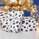Hand-drawn coffee beans cover this black and white wrapping paper with caffeinated bliss, accompanied by curved text that reads "Mmm coffee." Now you can give the devoted coffee lover in your life a gift of coffee wrapped in coffee!