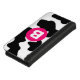 Quirky cool black and white cow spots pattern with bold hot pink monogram.
