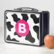 Quirky Cow Patch Pattern Pink Monogram Metal Lunch Box