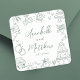 Quirky Hand Drawn Green Whimsical Wedding Square Sticker