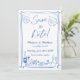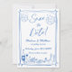 This quirky wedding save the date card features whimsical hand-drawn illustrations with a playful and romantic vibe. The intricate doodles, characterized by wavy and squiggly lines, add a touch of uniqueness and personal flair to your wedding save the date. The blue and white palette complements the artistic design, making it a perfect choice for couples looking to infuse a bit of fun and creativity into their special day. Explore our coordinating items available in-store for a cohesive and stylish look. (c) Ever After Wedding