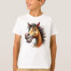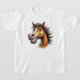 The illustration features a cartoon-style horse with a friendly and quirky expression. It has highly exaggerated and expressive features: large, round eyes with prominent pupils, a big, broad smile revealing its teeth, and a playful, slightly tousled mane. The watercolor technique adds a vibrant, lively feel to the artwork, with subtle splashes of color that highlight the horse's joyful demeanor. The ears are perked up, suggesting alertness and curiosity. The overall composition emphasizes a whimsical, humorous character.