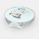 These four quirky illustrated coasters are great for use at a cocktail party or for just entertaining just a few friends. The simple design and odd approach to everyday life set them apart from ordinary coasters. Part of my Fuzzy Logic line of distinctive cards and gifts featuring original art from James McGinty. James' work offers a unique perspective on the world, combining unexpected associations, word play, bold lines, and intentionally rough representations of people and objects. Whether literal or abstract, simply funny or deeply resonant, the one-of-a-kind creations in this quirky line are sure to charm and delight.