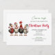 Quirky Watercolor Chickens Red Green Christmas Invitation