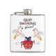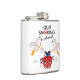 Well made flask, a little better than I had expected. Flask came in clear plastic box which gave it a nice presentation when I took it out of the zazzle packaging. Image is not printed on flask but on sticker. Don't know how this will hold up I haven't used it yet. This would make a Great gift! I plan to purchase more for friends! Cheers. I thought a little brighter than computer. Very crisp, writing wasn't