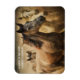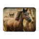 This fridge magnet has brown and white horses running in the wild and a quote about horses.