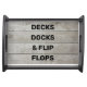This fun serving tray is decorated with the quote, decks docks and flip flops, on a weathered wood background, making it perfect for the cottage, boat, beach house or summertime.
