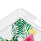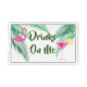 This fun serving tray is decorated with the cute quote, Drinks on Me, palm leaves, a pink flamingo and cocktail, making it perfect for your next summer party.