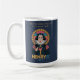 Available in two stylish background options—cream for a soft, cozy morning vibe or navy for a bold, vibrant statement—this mug is as versatile as it is fun. The intricate illustration of a Renaissance figure enjoying a cup of coffee adds a touch of elegance, while the warm gold and muted tones create a timeless aesthetic.