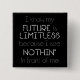 A black square button with the quote "I know my FUTURE is LIMITLESS because I can see NOTHIN' in front of me".
