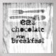 This quote poster has rustic style text eat chocolate for breakfast in black and white tones on wood grain design distressed style square poster wall art decor for home or office. Original art copyright Ann Powell.