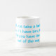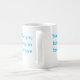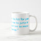 A mug with a funny quote engraved in blue.